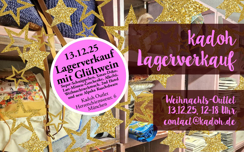 Der Advent ist in vollem Gange – und bei kadoh ist Schnäppchen Time! Unser großer Advents- & Lagerverkauf am 13.12.25 von 12-18 Uhr steht vor der Tür und lädt euch ein zum Stöbern, Entdecken und natürlich zum Glühwein-Trinken. Last-Minute-Geschenkideen, Mega-Schnäppchen, Schmuck, Weihnachtsdeko, Taschen, und und und ...