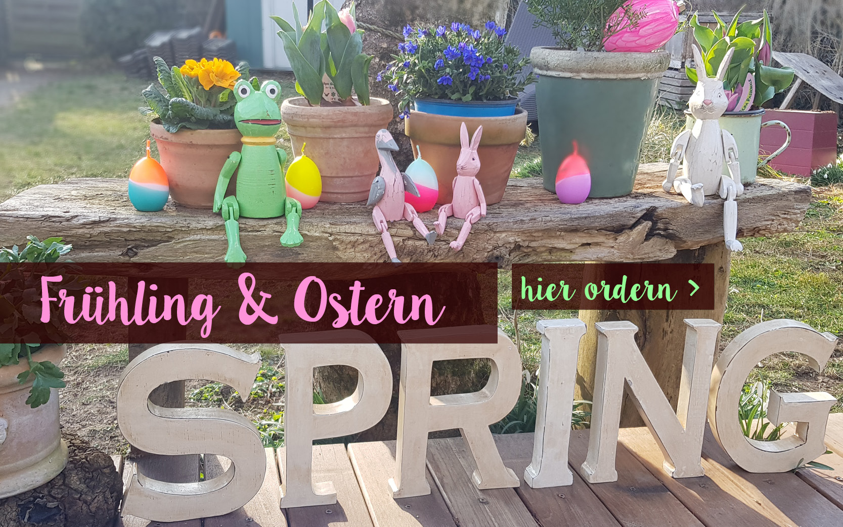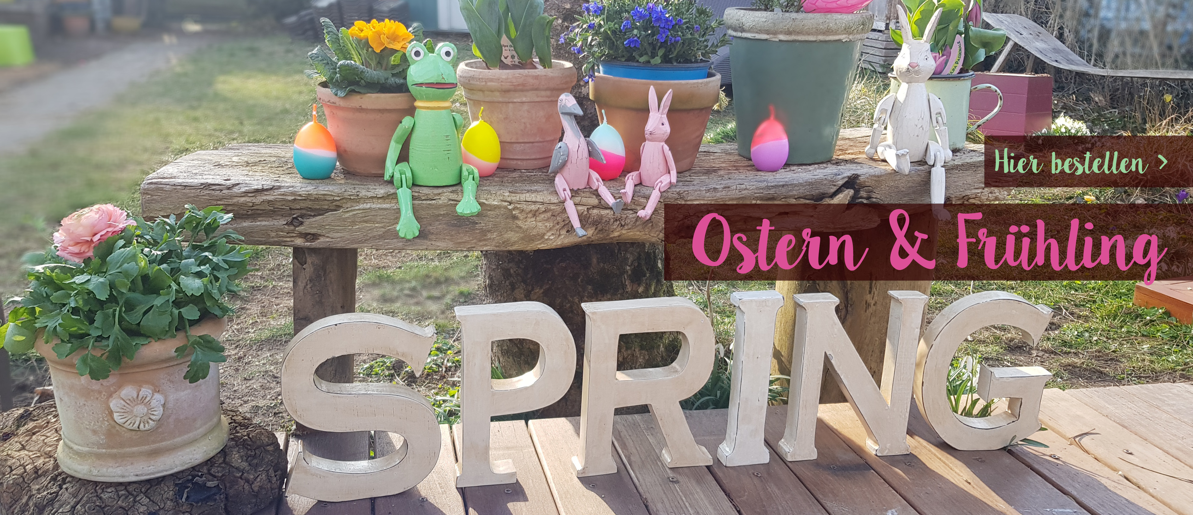 Ja, ja, es ist noch kalt und grau und nix grünt und blüht ... umso mehr wächst de Vorfreude auf den Frühling mit frischer Frühlings- und Osterdekoration. Besonders beliebt sind jedes Jahr unsere handgemachte Holzfiguren und Kantenhocker, die Gemütlichkeit und Witz ins Haus bringen. NEU: 3er Sets mit süßen Hasen- und Hühnerfamilien. Und den lieben 14.2. nicht vergessen! Valentinstag!