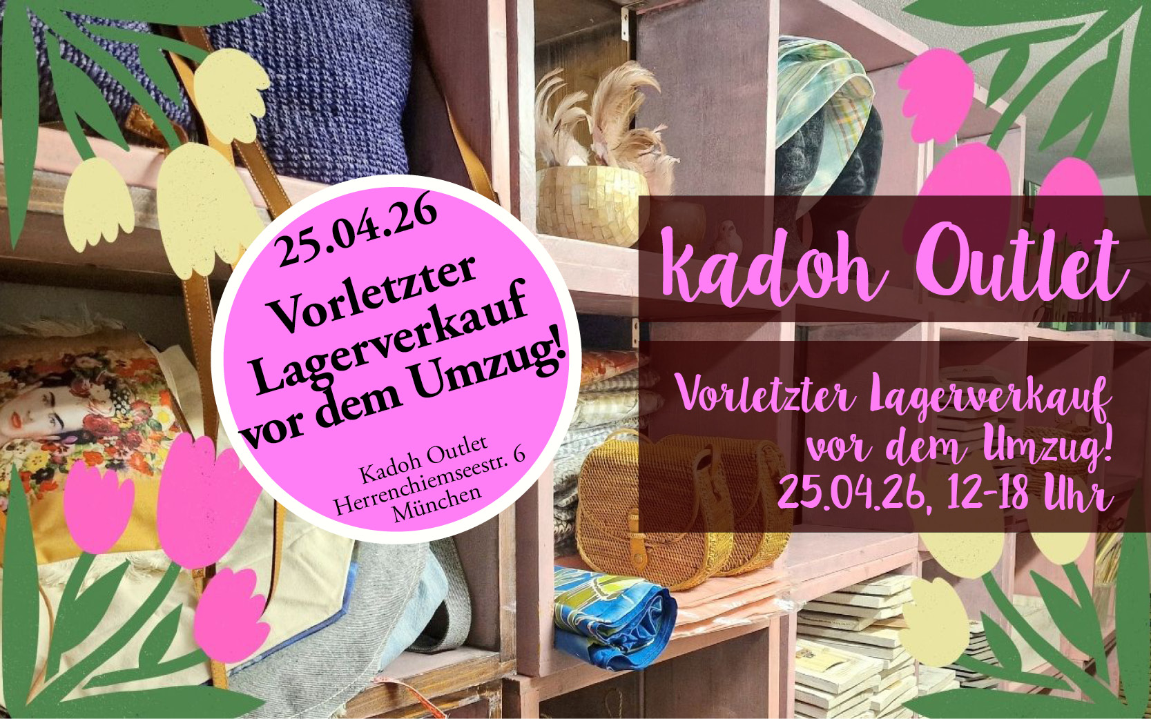 Zum vorletzten Mal vor dem großen Umzug nach Dänemark gibt's einen großen frühlingshaften kadoh (R)Ausverkauf. Neue Osterware, Osterdeko, Schmuck, Taschen & Accessoires, Alpaka reduziert und großer 2nd Hand Basar – bei kadoh ist nochmal Schnäppchen Time! Am Samstag, den 21. März von 12-18 Uhr könnt ihr stöbern und entdecken.