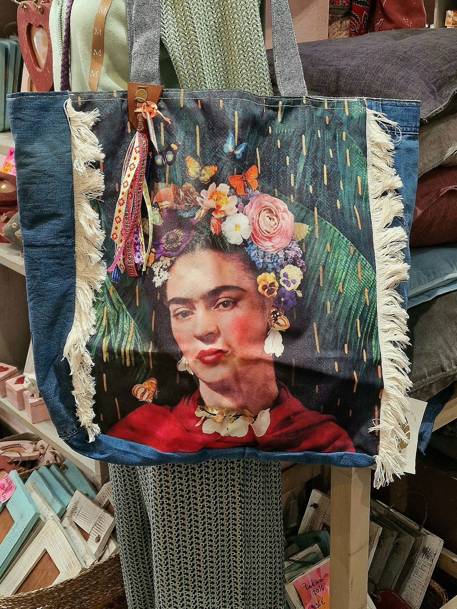 Shopper FRIDA Kahlo Butterfly Jeansoptik, Bohostyle