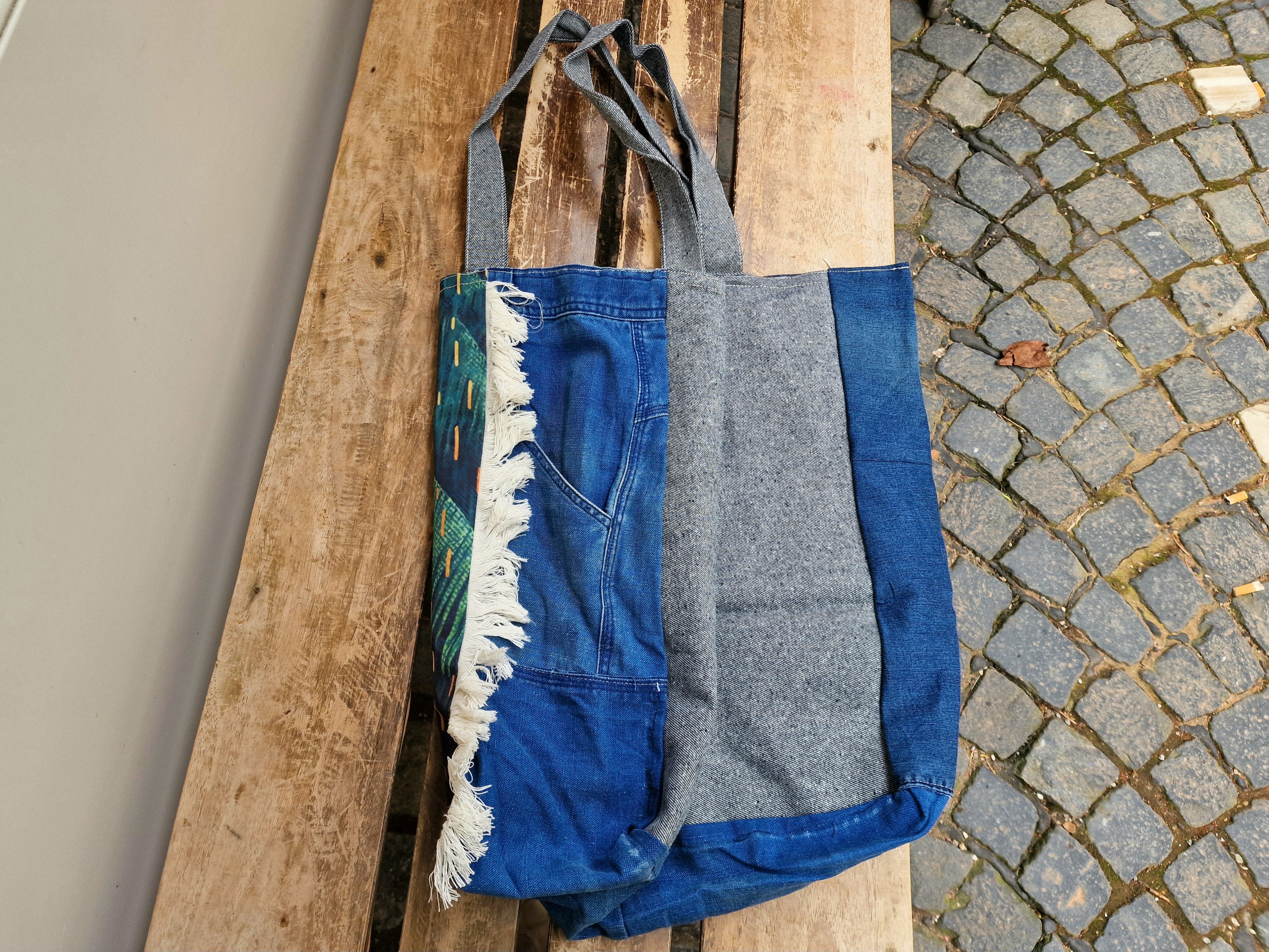 Material: Jeans-Baumwollstoff, Bild Vorderseite Kunststoff, abwaschbar
